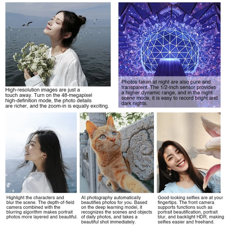 4. Equipped with 3 cameras, Rear cameras: 48MP main camera (f/1.8 aperture) + 2MP depth camera; 8MP f/2.0 aperture front camera, take high quality pictures and good selfie.