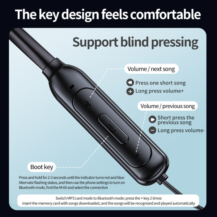 M60 8D Surround Sound Wireless Neck-mounted 5.1 Bluetooth Earphone Support TF Card MP3 Mode