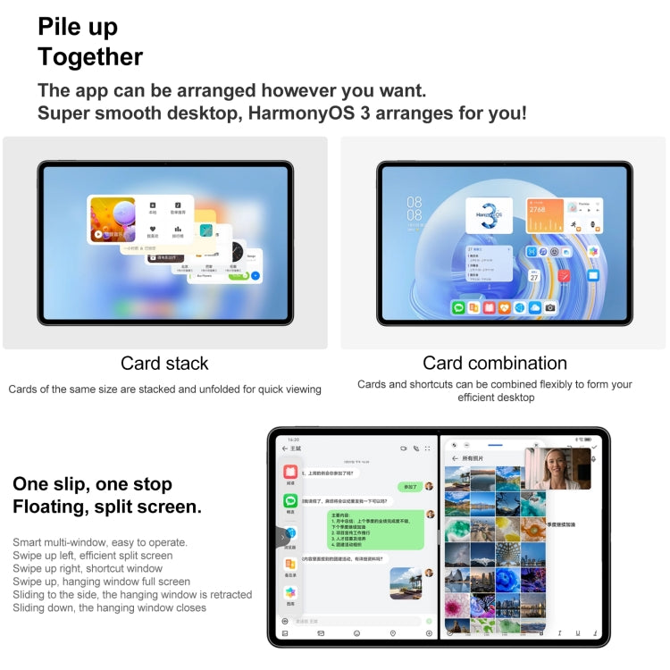 8. Special features: Sharing Mobile Phone Signal / Remote Control PC / Camera Smart Tracking / New HarmonyOS UI / Interoperable Systems / Parallel Vision / All-screen Handwriting / Smart Voice Key / Smart Multi-window / Knuckle Gestures / Smooth Call, etc.