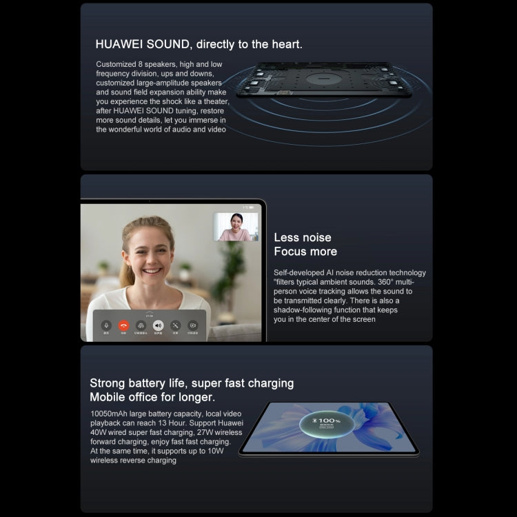2. HUAWEI SOUND effect, 8 x large amplitude speakers, AI noise reduction, restore more sound details
