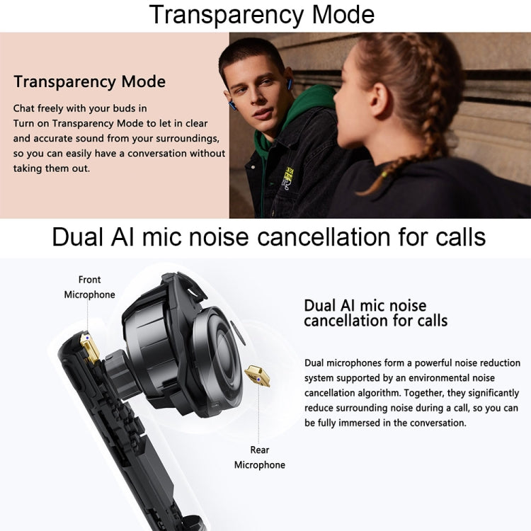 1. Dual-microphone call noise reduction + AI intelligent wind noise recognition, which greatly reduces environmental noise and makes calls clear