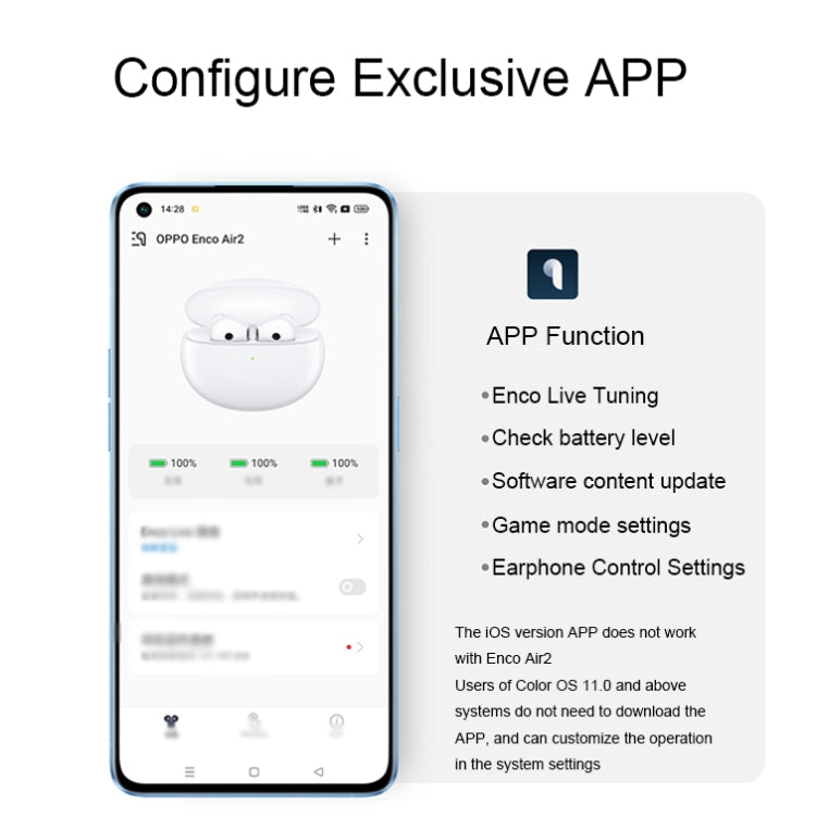 OPPO Enco Air2 Wireless Semi-in-ear AI Call Noise Reduction Music Sports Bluetooth Earphones, Enco Air2 (White), Enco Air2 (Blue)