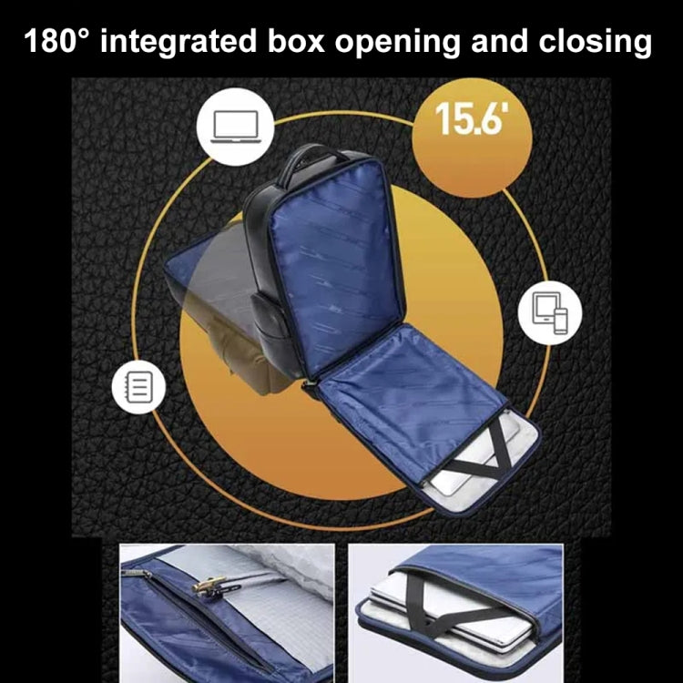 Bopai 61-123291 Large-capacity First-layer Cowhide Laptop Backpack with USB+Type-C Port, Lychee Pattern, Falling Pattern
