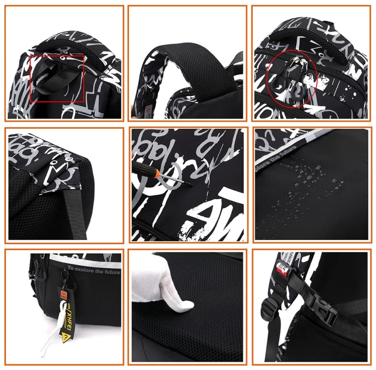 For Teens Boys Travel Laptop Backpack School Bag Casual Book Bag, Black, White Gray Letter, Graffiti, Camouflage Gray, Blue Camouflage, Letter 123