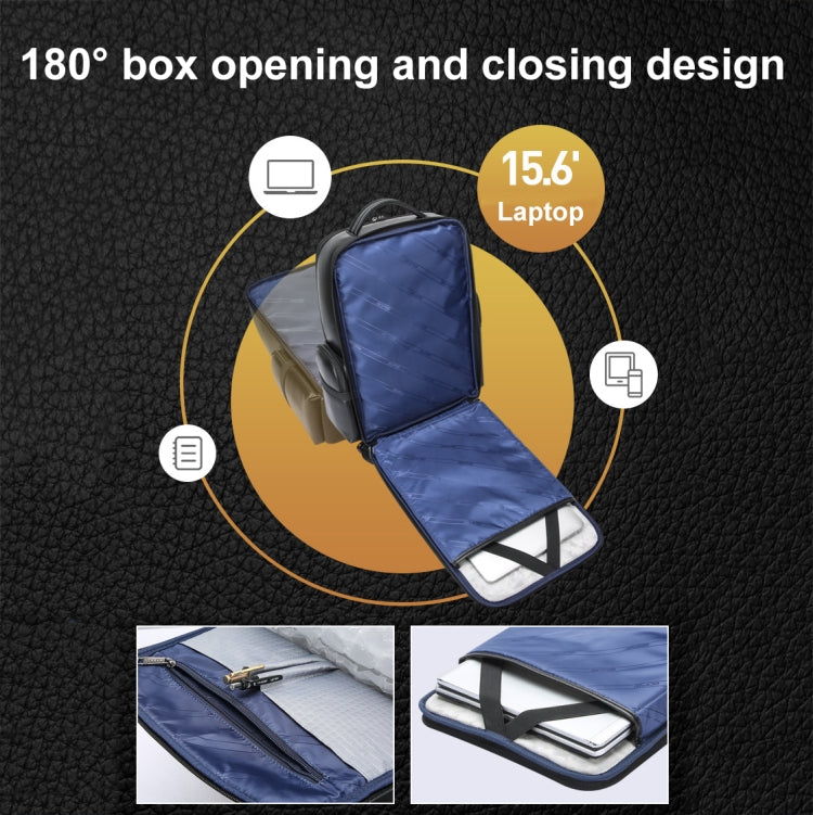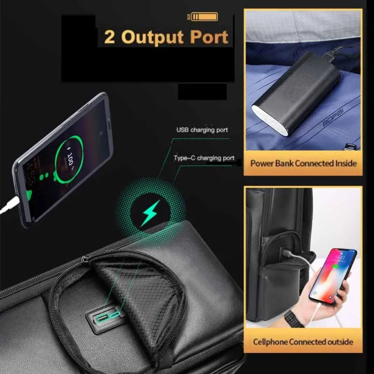 Bopai 61-98611 Large-capacity Waterproof First-layer Cowhide Laptop Backpack With USB+Type-C Port, 61-98611
