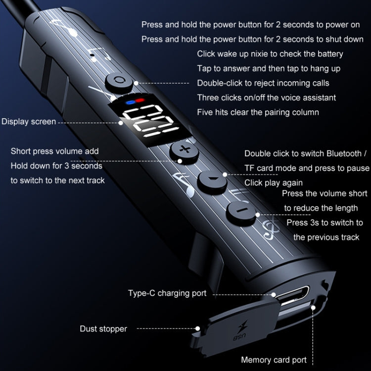 M226 Neck-Hanging In-Ear Pentatone Wired Sports Digital Display Bluetooth Earphone