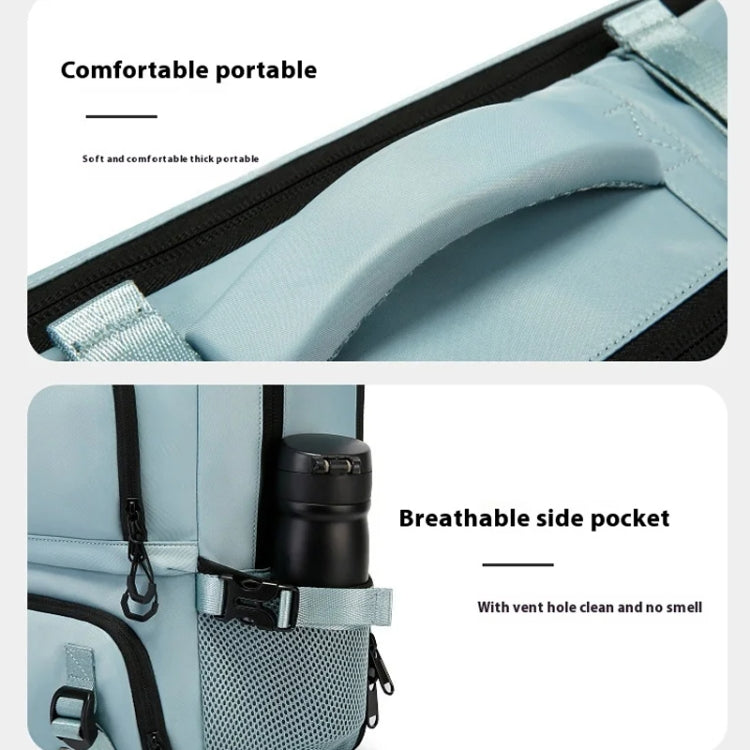 3. Independent shoe compartment, portable storage, the shoe compartment can be placed in shoes up to size 46, to protect the shape of shoes, does not take up space