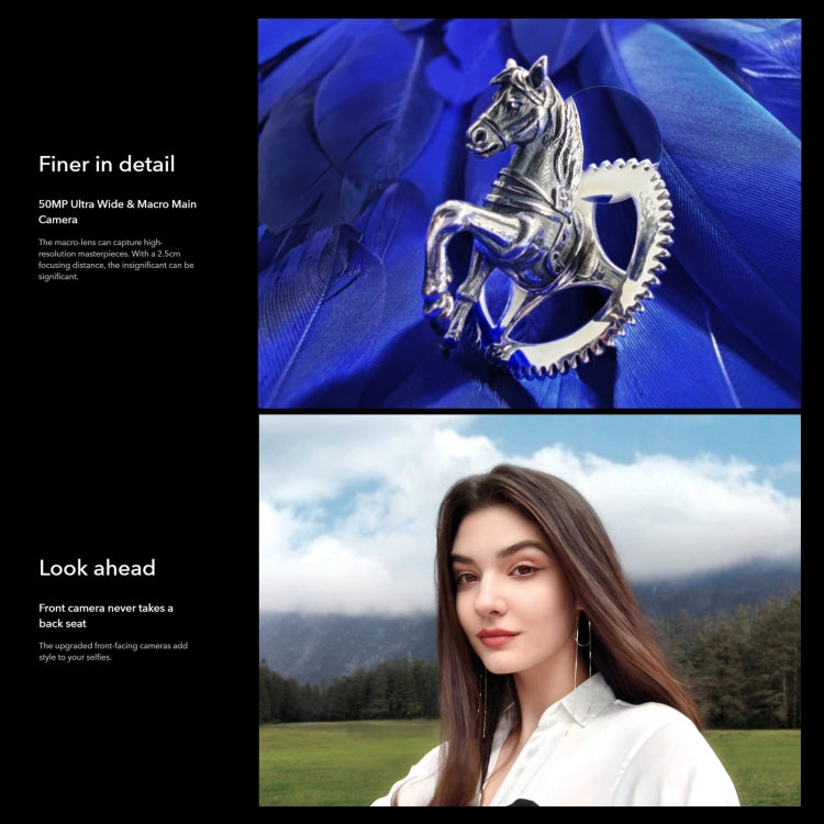 4. Equipped with 4 cameras: 3 rear cameras and 1 front in-screen cameras, take high quality pictures and excellent selfie. 3 Rear cameras: 54MP wide-angle camera (f/1.9 aperture)+ 50MP ultra wide-angle camera (f/2.0 aperture)+ 8MP telephoto camera (f/2.4 aperture, OIS optical anti shake); Front camera: 16MP camera (f/2.4 aperture) .