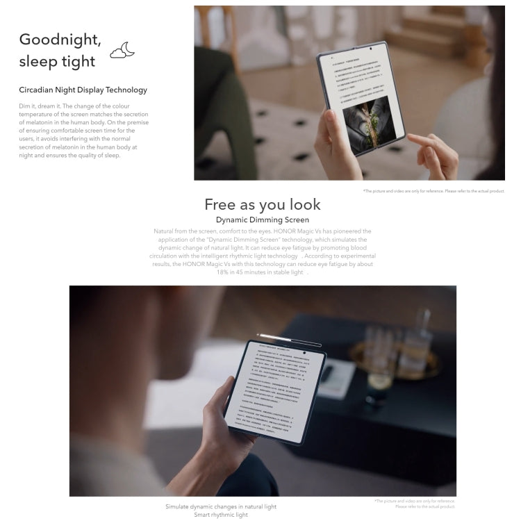 1. Internal screen: 7.9 inch, 2272 x 1984 pixels, foldable flexible OLED screen, support 90Hz refresh rate; External screen: 6.45 inches, 2560 x 1080 pixels, OLED nanocrystalline glass outer screen, support 120Hz refresh rate, small body, wide field of vision.
