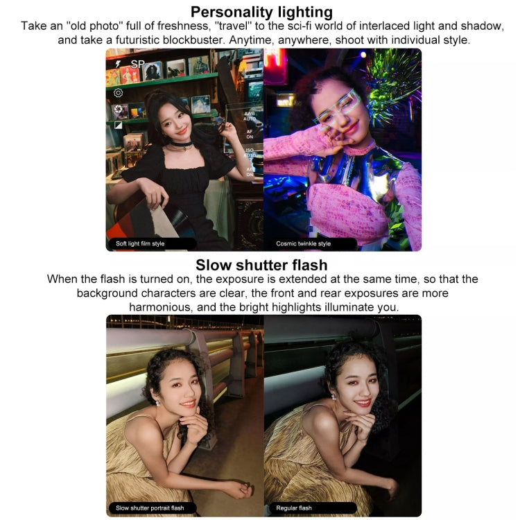 4. Equipped with 4 cameras, 3 rear cameras and 1 front camera, take high quality pictures and excellent selfie. Rear cameras: 50MP F1.88 main camera + 8MP F2.2 wide-angle + 12MP F1.98 portrait; Front camera: 50MP F2.0 camera (The front supports 0.8x, 1x, and 2x digital zoom; the rear main camera and portrait support 20x digital zoom; the rear wide-angle supports 0.6x-0.9x digital zoom)