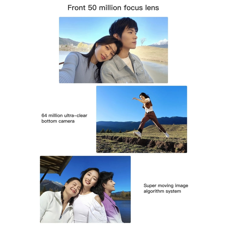 5. Camera function: Front: Photo, night scene, portrait, video, micro movie, high resolution, dynamic photo, beautiful file, AR cutie, sports, double exposure, dual view video; Rear:Photo, night scene, portrait, video, high pixel, panorama, slow motion, dynamic photo, time-lapse photography, professional mode, AR cute shot, document correction, dual-view video, micro movie, double exposure, motion capture, time slow door, Smart vision.